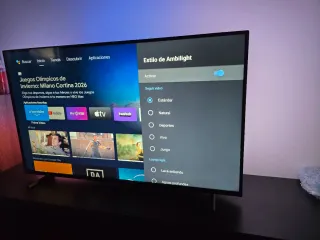 Televisor inteligente de 43 pulgadas. - Pantalla de 43 pulgadas. - Diseño moderno. Ambilight , lo único no funciona mando a distancia, perfecta para videojuegos etc