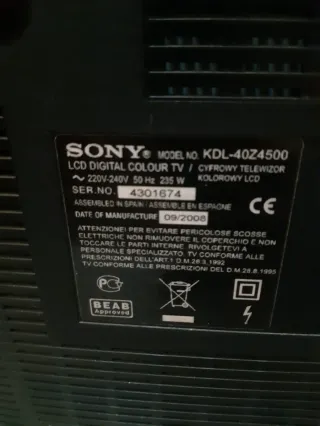 Mando a distancia original para TV. - Modelo: RM-EA001 - Botones de navegación y numéricos. - Botones de función: MENU, PROG, OK. El mando se compró nuevo pero al romperse la TV se vende Valido para Sony LCD Television 36-40-inch KLV-W40A10E, KLV-V40A10E, KDL-W40A12U, KDL-V40A12U Plasma Television >36-inch KE-V42A10E, KDE-V42A12U