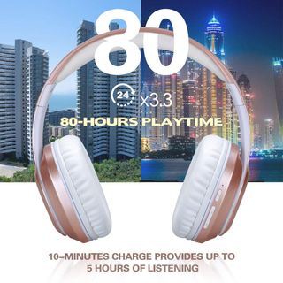 Auriculares inalámbricos marca Worworder color rosa. Cómodo diseño ergonómico, las almohadillas memory protein proporcionan una comodidad duradera y una excelente durabilidad. El deslizador de acero inoxidable y las diadema suave acolchada. Ofrece 80 horas de tiempo de reproducción. carga rápida con cable de audio 3.5 mm. El micrófono integrado en el auricular te permite controlar tu música contestar llamadas directamente. conexión bluetooth V5.0, MP3, tv, pc iPad precio Amazon 33