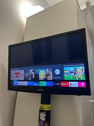 Televisión Samsung Smart TV en color negro. Tiene 1 año y medio. Esta en perfecto estado, no tiene ni un solo rasguño en la pantalla, lo único es que la plataforma en la que se sostiene esta un poco rayada por estar guardada. Nunca me ha dado ninguna problema. - Pantalla plana. Diagonal 26 Pulgadas, (65,70 cm, ancho 56 cm, alto 34,5cm, 4 cm de grosor) - Conexión a internet. - Conexión con antena. - Acceso a Smart Tv; Netflix, Prime Video, etc...