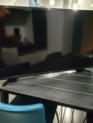 Televisor inteligente Samsung de 40 pulgadas con resolución 4K. - Pantalla de 40 pulgadas. - Resolución 4K UHD. - Smart TV con acceso a aplicaciones. Tiene una grieta en una de las esquinas (sin dañar la pantalla) En la pantalla se pueden apreciar unos puntos(con más intensidad de luz, fugas) Funciona sin problemas