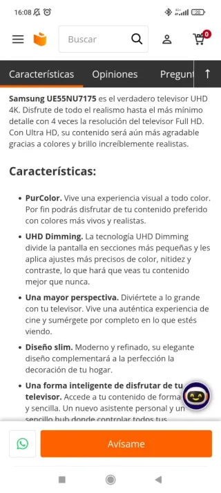 - Samsung TV QLED 4K 2024 55Q70D Smart TV de 55"
