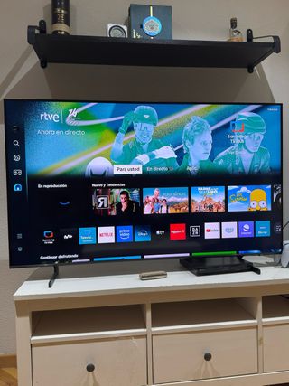 Vendo TV Samsung QLED 43" 4K en estado como nuevo por poco uso. Comprada en la web oficial de Samsung, con GARANTÍA oficial hasta enero de 2027 (entrego factura). Incluye: Mando original en perfecto estado. Soporte de pared ARTICULADO marca AM Alphamount (muy robusto y orientable). Peanas originales de serie. Colores vibrantes (Quantum Dot) y Smart TV rápido. Panel impecable, sin marcas ni píxeles muertos. La garantía oficial. Se puede probar. Trato en mano.