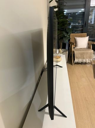 Base ovalada negra para televisores Samsung. Su diseño elegante complementa cualquier espacio. - Color: Negro - Forma: Ovalada - Material: Plástico brillante