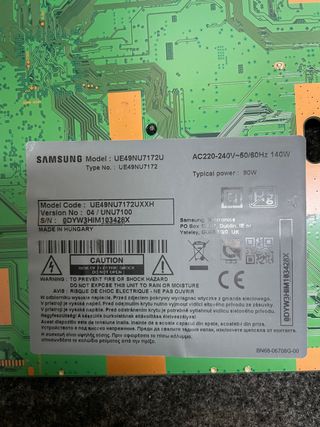 Vendo placa base de TV Samsung UE65TU8505. Está en buen estado. - Modelo: UE65TU8505 - Tipo: UE65TU8505 - AC220-240V - 60Hz 160W - Potencia típica: 115W - Número de serie: BFQAQ3HWR1915Z