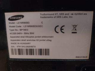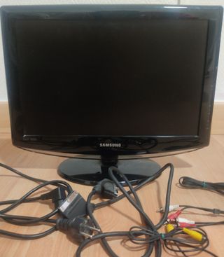 Televisor Samsung de 19". En perfecto estado, con los cables que aparecen en la foto y con las características que se describen en las 2 últimas fotos No viene con mando, pero con uno universal se puede utilizar sin problema.