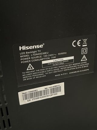 Televisor Hisense de 40 pulgadas en perfecto estado. Modelo LTDN40D36EU - Modelo Hisense 40" - Pantalla en excelentes condiciones - Falta el mando (uno universal vale) - No es smart TV