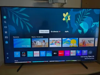 Televisión Samsung de pantalla plana. - Diseño elegante y moderno. - Soporte central plateado. - Mando por voz. - Smart TV. - Muy poco uso. - Se puede ver sin problema.