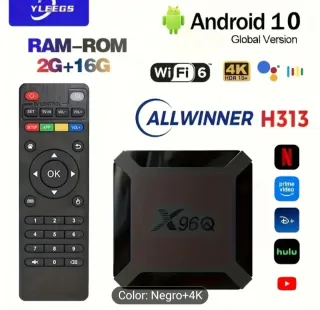 Disfruta de tus contenidos favoritos con este Smart TV Box. - Modelo X96Q. - Procesador Allwinner H313. - Conectividad Wi-Fi 6. - Memoria RAM de 2GB y ROM de 16GB. - Soporta resolución 4K HDR 10+. - Incluye mando a distancia.