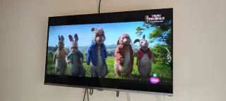 Televisor Xiaomi de 55 pulgadas con Google TV. Tiene un defecto en una esquina y un parpadeo en la pantalla que hace que aparezcan y desaparezcan las rayas que se ven en la foto. Sin embargo, se deja ver. Precio negociable