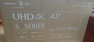 Televisión Hisense de 43 pulgadas con resolución UHD 4K Precio negociable. - Compatible con Dolby Vision. - Incluye modo juego Plus. - Sonido DTS:X. - Smart TV con acceso a Netflix, Prime Video y YouTube. - Conectividad Bluetooth.