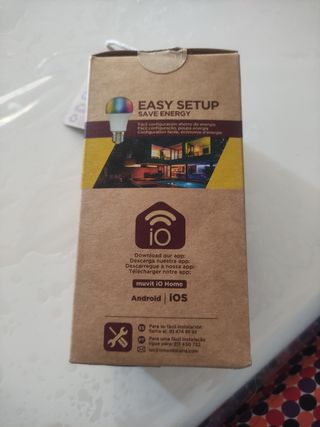 Bombilla inteligente. Se controla desde el móvil pudiendo variar la intensidad y el color de la luz. Una vez configurado, también se enciende y apaga desde el interruptor normal.