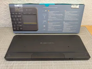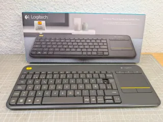 Vendedor ⭐️⭐️⭐️⭐️⭐️ Vendo teclado inalámbrico Logitech K400 Plus con touchpad integrado - Versión con distribución en ESPAÑOL (itiene Ñ). - Ideal para controlar el PC, la Smart TV o la Raspberry Pi desde el sofá sin necesidad de ratón. - Funciona correctamente a nivel electrónico. - Incluye su caja original y el receptor USB Unifying (guardado en el compartimento de las pilas). ⚠️ OJO: Le falta una tecla (la del corchete/acento ^ [ , situada a la derecha de la P), tal y como se ve en las fotos. El pulsador de goma funciona, pero falta la pieza de plástico. 🤝Negociable
