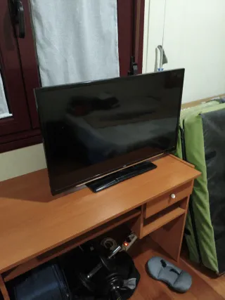 Televisor de pantalla plana. Medidas: Ancho 94 cm Alto 57 cm Fondo 10 cm. Funciona perfectamente, solamente el botón de encender/apagar del propio televisor falla a veces. NO ES SMART TV.