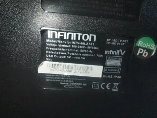 Televisor inteligente Infiniton Modelo: INTV-40LA581 smart TV la TV enciende pero se queda en el logo no pasa de hay la vendo en 35€ para piezas o reparar SE HACEN ENVÍOS A TODA ESPAÑA NO SE ADMITEN DEVOLUCIONES NO ME AGO CARGO DE LA PANTALLA EN EL ENVÍO NO ENTREGO MANDO GRACIAS