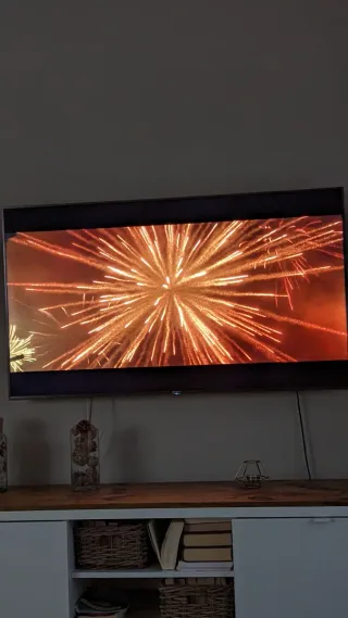 Televisión Sony Bravia de 55 pulgadas. - Pantalla grande para una experiencia inmersiva. - Diseño elegante en color negro. - tiene un arañazo que se observa con la TV apagada pero encendida no se aprecia apenas.
