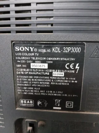 Televisor Sony Bravia de 32 pulgadas, modelo KDL-32EX72. Ideal para piezas o repuestos. - Pantalla LCD Digital. - Voltaje: 220V - 240V. - Frecuencia: 50 Hz. - Consumo: 101 W. - Número de homologación: 5446001. - Número de serie: 3010838.