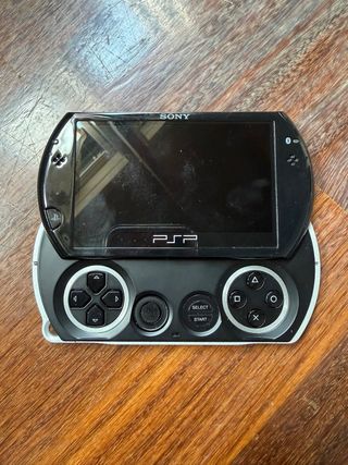 Consola portátil Sony PSP Go en color negro. Un dispositivo compacto y versátil para llevar tus juegos contigo. -con cargador y se puede conectar a la TV - Diseño deslizante. - Pantalla de alta calidad. - Controles intuitivos.