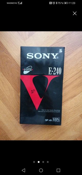 Cinta de vídeo VHS de la marca Sony, modelo E-240. - Formato Hi-packing. - Duración SP: 4 horas. - Ideal para grabaciones de alta calidad.