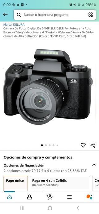 Cámara de fotos profesional de 64 MP videos 4K, WiFi. Trae tarjeta de memoria SD de 64Gb valorada en 300€ Trae: Estuche de transporte Cable de carga Cable para Tv Accesorio para lente