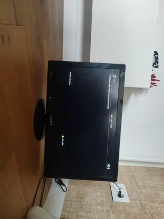 Televisor Sony Bravia de 32 pulgadas. Incluye soporte para pared. El mando no es el original, pero es uno más moderno compatible. No admite TDT actual.