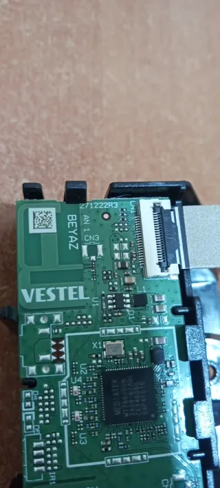 Placa electrónica de repuesto para TV Vestel. - Modelo: 271222R3 - Compatible con Toshiba 40LV3563DG - Texto en placa: SIYAH, BEYAZ, VESTEL - Conector CN1 visible