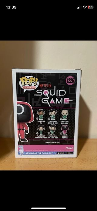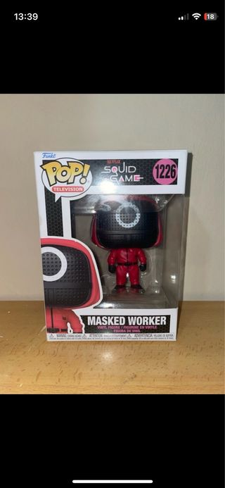 Figura Funko Pop del trabajador enmascarado de la serie Squid Game. - Número de modelo: 1226. - Personaje: Masked Worker. - Serie: Squid Game. - Licencia: Netflix Television.