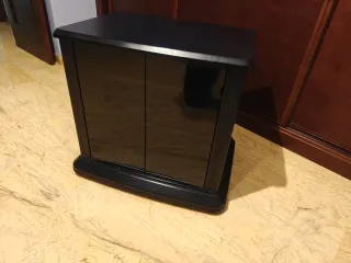 Mueble para televisión con un diseño moderno y funcional. En perfecto estado - Acabado en negro brillante. - Puertas frontales para almacenamiento. - Base con ruedas para fácil movilidad.