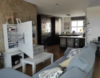 Mueble de salón de diseño de BAIX MODULS (gama alta) modelo Kay en acabado madera clara tipo fresno, muy luminoso, elegante y facilmente combinable con todo tipo de materiales. La TV va instalada en un panel giratorio abatible, por lo que puedes orientarla hacia distintas zonas del salón o la casa. √ Gran capacidad de almacenaje oculto dentro del panel √ Cables totalmente escondidos en el brazo giratorio √ Diseño moderno, limpio y minimalista √ Mueble robusto y de alta calidad √ Apto para TV hasta 55" Incluye mesa de centro a juego, elevable, tb con almacenaje interior. Buen estado. 7 años de antigüedad. Precio negociable.