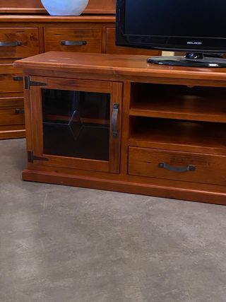 MUEBLE DE TV DE MADERA DE PINO RESISTENTE NUEVOç Mueble de TV robusto y duradero, fabricado en madera de pino. - Diseño elegante con puertas de cristal y tiradores metálicos. - Amplio espacio de almacenamiento con compartimentos y cajón. - Acabado natural que resalta la veta de la madera. - Tenemos mas muebles a juego como estanteria, libreria y aparador Pagas cuando recibes Garantia entregamos factura 624*956*019