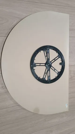 Base giratoria para televisor, ideal para optimizar el espacio y la visualización. - Diseño en madera clara. - Forma semicircular.