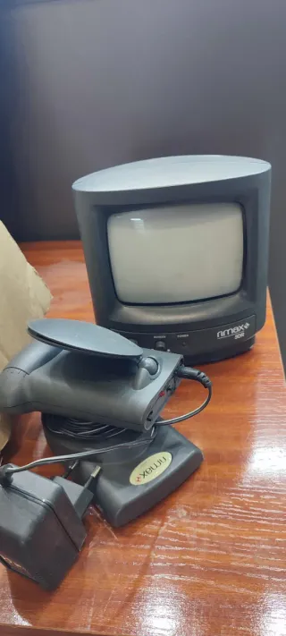 Televisor antiguo de la marca Radio La, un clásico de los años 80. Su diseño combina tonos marrones y grises, aportando un toque retro a cualquier espacio. - Diseño vintage. - Mando a distancia incluido.