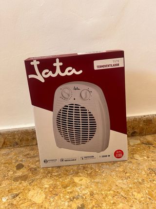 Termoventilador Jata TV78, completamente nuevo a estrenar. - Diseño compacto y moderno. - Dos niveles de potencia. - Termostato regulable. - Potencia: 2000 W - Protección contra sobrecalentamiento.