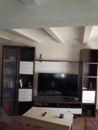 Mueble de televisión con un diseño moderno y funcional. Combina a la perfección con cualquier estilo de decoración. Comprado por 200e lo vendo por mudanza. - Acabado superior en madera. - Cuerpo principal en color beige. - Espacio central abierto. - Cajón inferior.