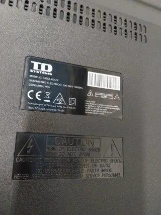 Televisor td system Smart TV 55 pulgadas en perfecto estado, resolución ULTRA HD 4K, tecnología Direct LED y HDR. Sistema WebOS con WIFI y distintas aplicaciones como YouTube, Netflix, PrimeVideo... Altavoces 20W Dolby Audio. Conectores en buen estado. Puedo añadir un soporte de pared nuevo. Entrego en Madrid.
