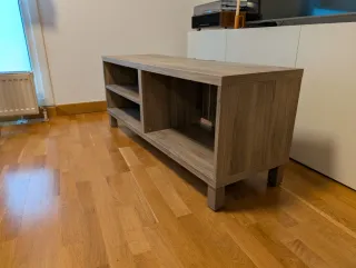Mueble de televisión de madera con baldas. Tiene alguna marca de morderlo el perro pero esta en buen estado y apenas se ve