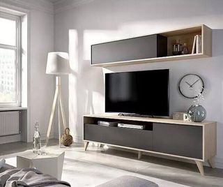 Mueble de salón (TV) moderno blanco y madera