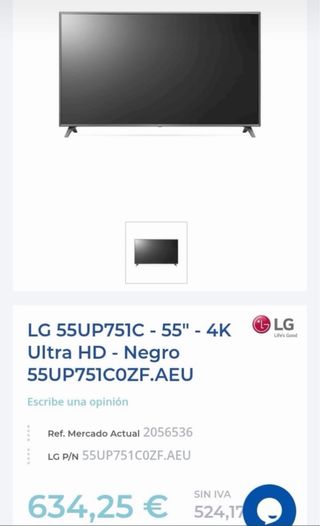 Televisor inteligente LG de 55 pulgadas. - Modelo: 55UP751COZF - Color: Negro