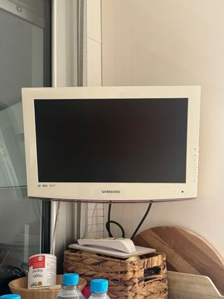 Televisor Samsung de color blanco, ideal para espacios reducidos o como monitor secundario. - Diseño compacto y elegante. - Compatible con montaje en pared.  no dispone de mando porque lo perdi