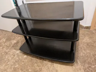 Regalo Mesa auxiliar de 3 estantes, ideal para colocar tu televisor y otros dispositivos. - Color negro brillante. - Diseño moderno y funcional. - Estructura robusta. No envío.