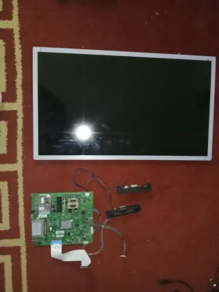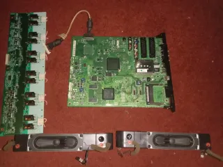 Componentes de televisión para repuesto o reparación. - Pantalla LCD. - Placa base. - Dos módulos de altavoz.