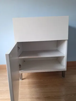 Mueble de almacenaje de la serie Besta de IKEA. Cuenta con un cajón superior, dos estantes interiores y una puerta abatible. - Diseño moderno y funcional. - Patas metálicas para mayor estabilidad. Regalo: Tiradores metálicos sin estrenar.