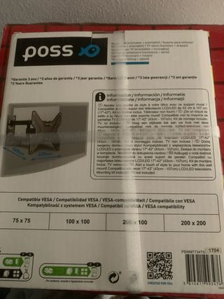 Soporte de pared para televisores universales. Fabricado en metal resistente de color negro. - Diseño articulado para ajustar el ángulo de visión. - Incluye tornillería para su instalación.