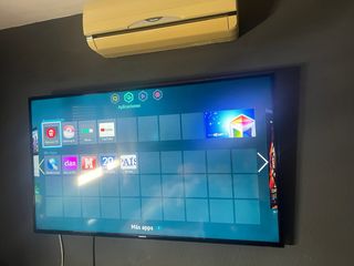 Televisión Samsung de 43 pulgadas. Pantalla de gran tamaño. Diseño moderno y elegante. Funciona perfectamente, solo dos años , tiene dos puntos blancos en la pantalla. 2 puertos USB, 3 HDMI, entrada satélite,mando a distancia y manual de instrucciones. Muy poco uso.