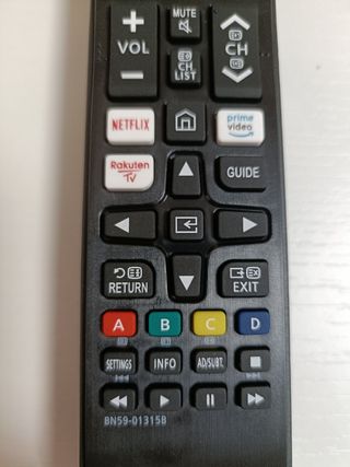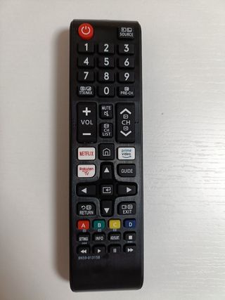 TOTALMENTE NUEVO A ESTRENAR Vendo mando a distancia universal para televisores Samsung, totalmente nuevo y sin usar ✅ Ideal como sustituto del mando original o como repuesto. Cuenta con botones de acceso directo a Netflix, Prime Video y Rakuten TV 🎬📡, perfecto para Smart TV Samsung. 🔹 Funciones completas: 🔴 Encendido / apagado 🔊 Control de volumen 📺 Cambio de canales 📋 Menú, guía, source, retorno y exit 🎮 Teclas de colores (A, B, C, D) ⏯️ Botones multimedia (play, pausa, avance, retroceso) 🖤 Diseño cómodo, ligero y fácil de usar. 🔋 Funciona con pilas (no incluidas). 📦 Artículo nuevo, nunca utilizado.