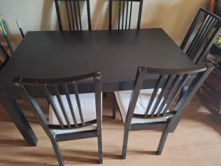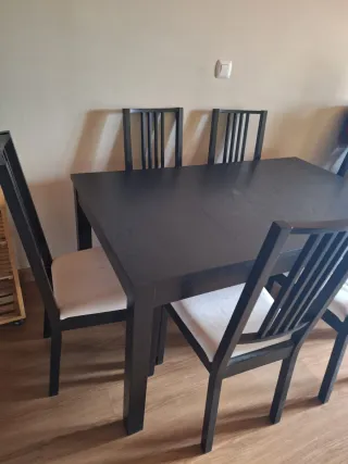 Conjunto de muebles para el comedor y salón. - Mesa de comedor oscura. - Seis sillas a juego con la mesa. - Alacena. - Mesa de televisión. - Para recoger en Alcalá de Moncayo