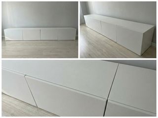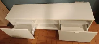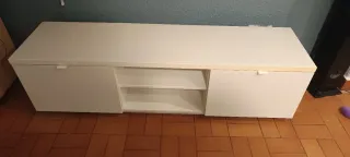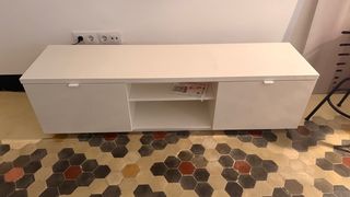 Se venden dos muebles de televisión modelo BESTA de Ikea. Le he puesto refuerzos en L para que sean más robustos. Llevan el accesorio para colgar en pared. Si quieres te regalo las patas blancas que le puse. 20 € cada uno.