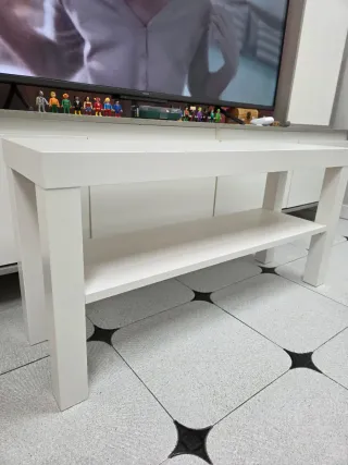 Mueble de salón moderno en color blanco, con un diseño limpio y funcional. - Amplio espacio de almacenamiento. - Diseño minimalista. - Ideal para televisores. Solo tiene en la parte superior el desperfecto que aparece en la ultima imagen, el resto está como nuevo