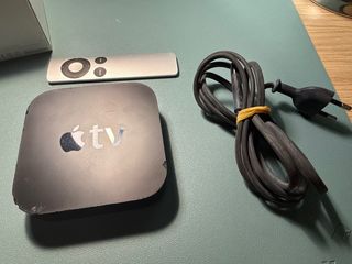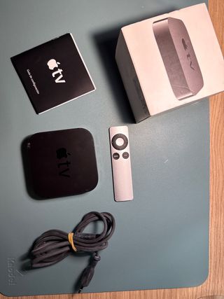 Apple TV con mando y cables
