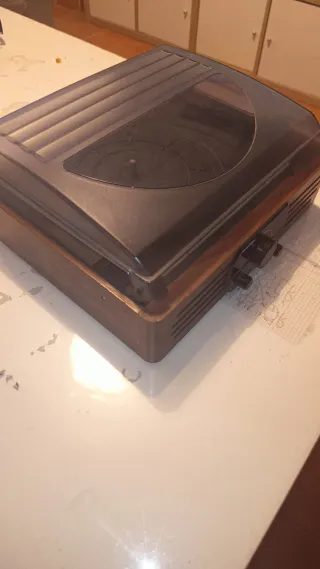 Tocadiscos vintage con reproductor de vinilos y radio. - Diseño clásico en plata y negro. - Incluye compartimento para casetes. Nose si funciona asín que no preguntarmelo